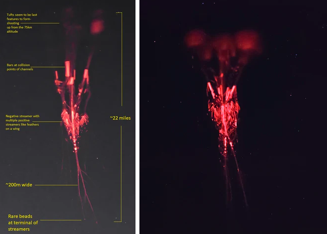По словам Смита, это самый большой и очень яркий спрайт, который ему удалось "поймать" в объектив камеры за последние несколько лет наблюдений ночного неба.