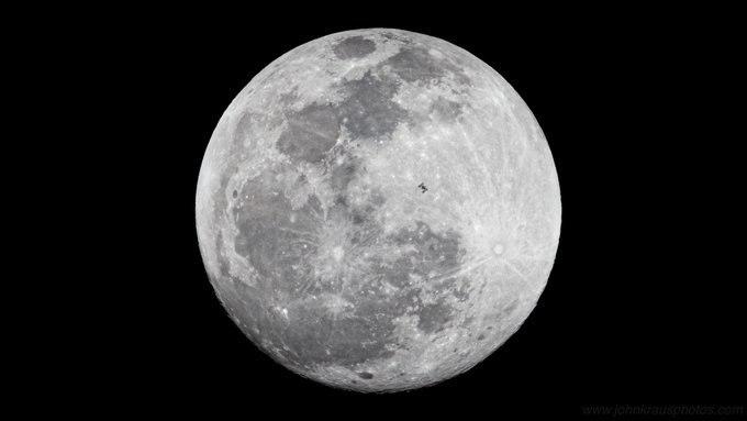 "Ух ты! Я все понял! Международная станция Space Station, вращающаяся вокруг Земли со скоростью 17 500 миль в час. Сегодня вечером проходит через полную луну, как видно из окрестностей заповедника Пейнс-Прери во Флориде. Окно для захвата этого перехода длилось всего лишь 0,58 секунды", - говорится в сообщении.