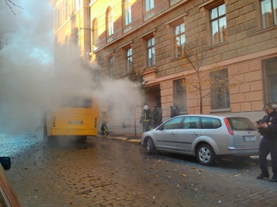Утром, 26 октября, загорелась маршрутка возле Черновицкой областной администрации.