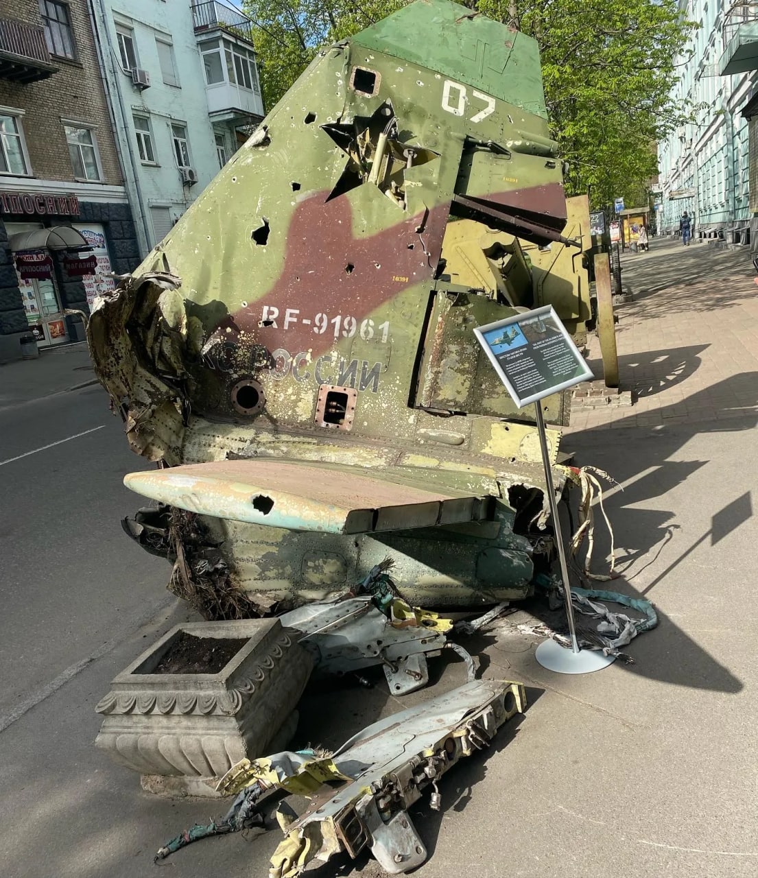 В Печерском районе Киева обустроили выставку разбитой российской техники. Возле Мариинского парка поставили сбитый самолет оккупантов.
