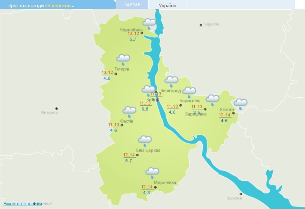 В то же время в Киеве и области погода будет, преимущественно, дождливой. Днем теплее всего будет в Мироновке, Белой Церкви и Яготине - от +12 до +14°C. Ночью теплее всего будет в самом Киеве - от +6 до +8°C.