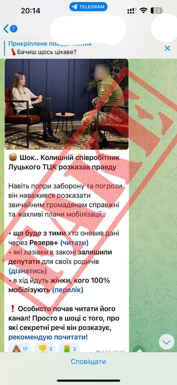 4. Российская ИПСО (информационно-психологическая операция). Учитывая текущий контекст войны с Россией, распространение подобных фейков является типичной тактикой русской пропаганды. Цель таких информационных атак – подорвать доверие граждан к украинским государственным учреждениям, в частности, к ТЦК, создать хаос и дестабилизацию в обществе.