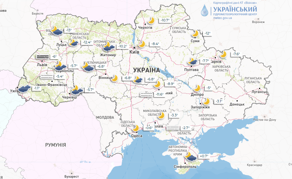 В ближайшие два дня в Украине ожидаются осадки и местами повышения температуры воздуха. На северо-востоке страны ночью 11-16° мороза.