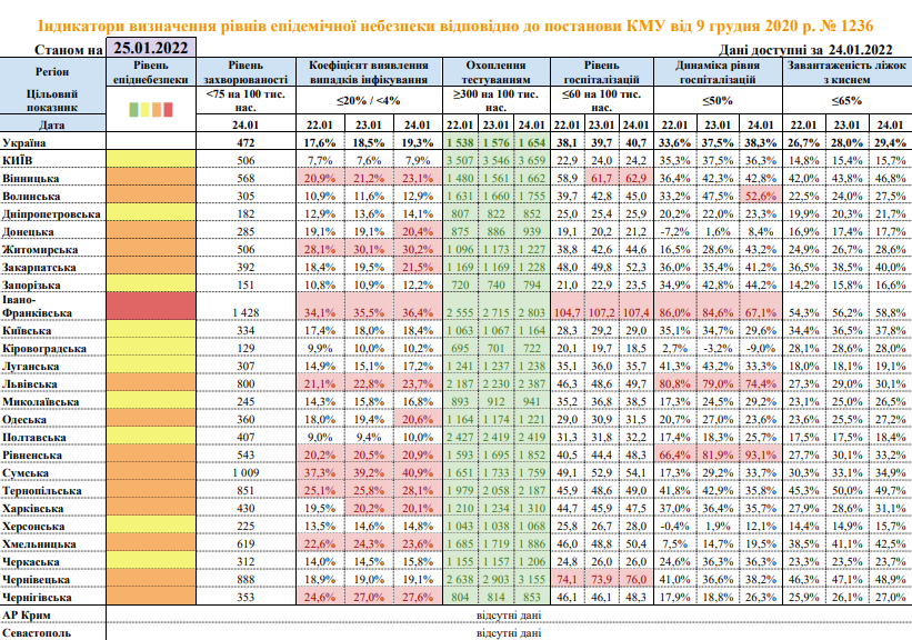 Напомним, 24 января в "красную" зону перешла Ивано-Франковская область.