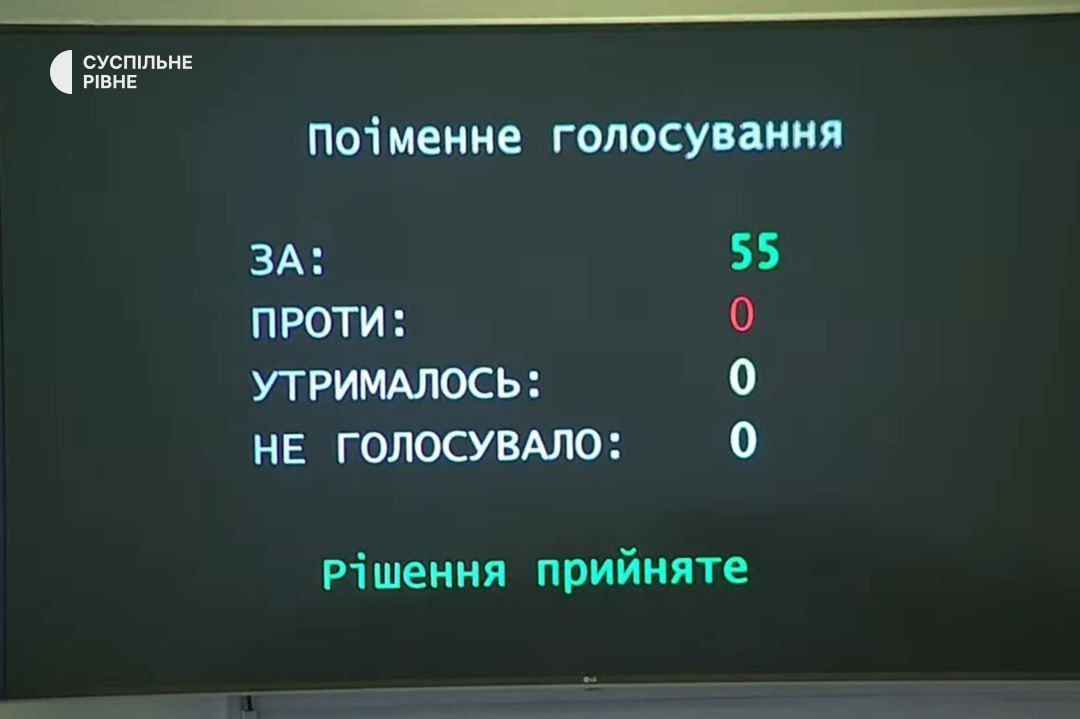 Запрет Украинской православной церкви (московского патриархата) поддержали 55 избранников из 55 присутствовавших в зале.