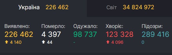 В Украине за минувшие сутки, 3 октября, зафиксировали 4 140 новых случаев коронавируса, от COVID-19 умерли 44 человека.
