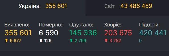 В Украине за минувшие сутки, 26 октября, зафиксировали 6 677 новых случаев коронавируса.