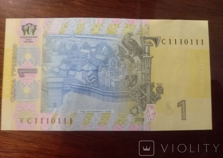В Украине выставлена на аукцион уникальная купюра номиналом одна гривна, выпущенная в 2014 году. За оригинальность банкноты владелец просит семь тысяч гривен.