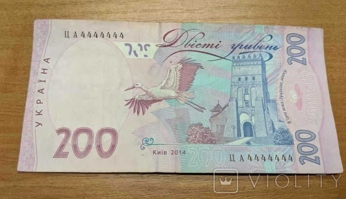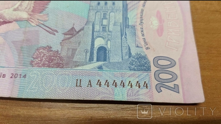 Владельцы редких гривневых купюр пытаются на них заработать - в Украине на аукционе продают 200 гривен с номером ЦА 4444444. Хозяин выставил за нее цену 4 тысячи долларов, но пока готовы заплатить только чуть больше 2 тысяч гривен.