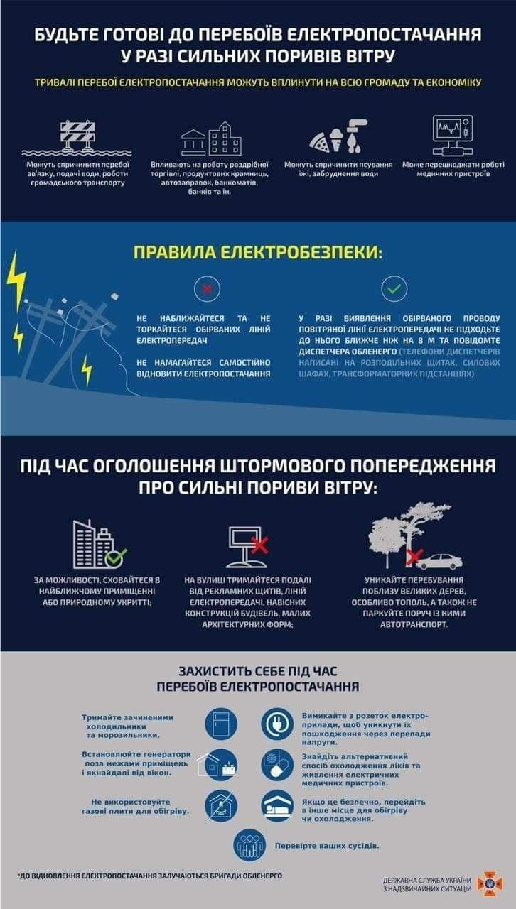 Государственная служба по чрезвычайным ситуациям дала советы жителям Украины в случае отключения электроснабжения из-за сильных порывов ветра.