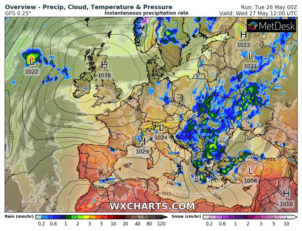 В большинстве областей Украины 27 мая немного потеплеет, до +15..+19 градусов. На юге, на востоке, в Днепропетровской области температура составит +17..+22 градуса.