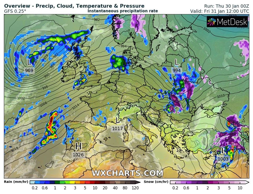 В пятницу, 31 января, в Украине будет тепло, но во многих областях пройдут осадки.