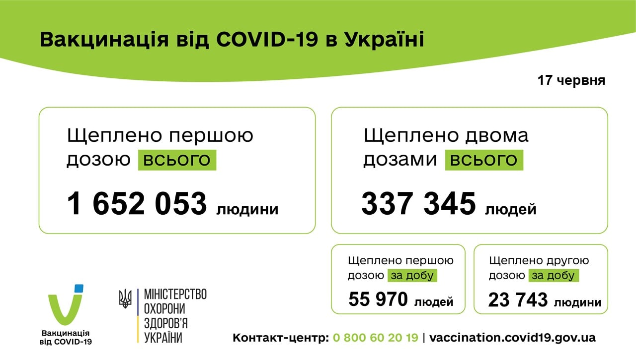 За сутки 17 июня в Украине привито против коронавируса 81 713 человека, и это является рекордом для страны.