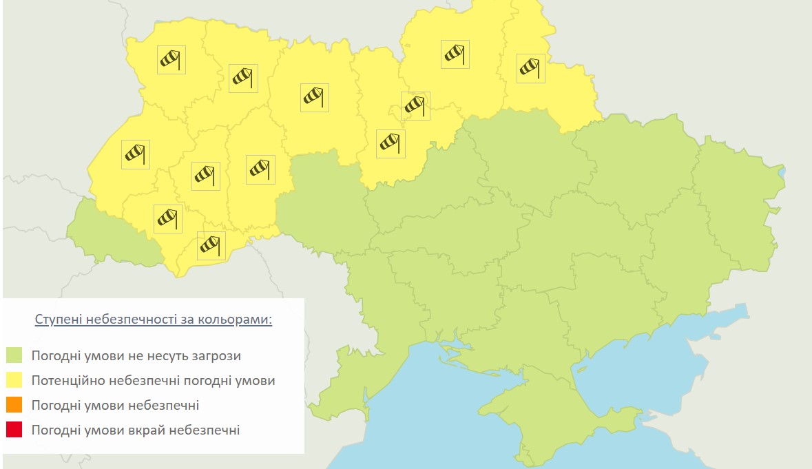 Также Укргидрометцентр предупреждает о сильном ветре, ливнях и снеге.