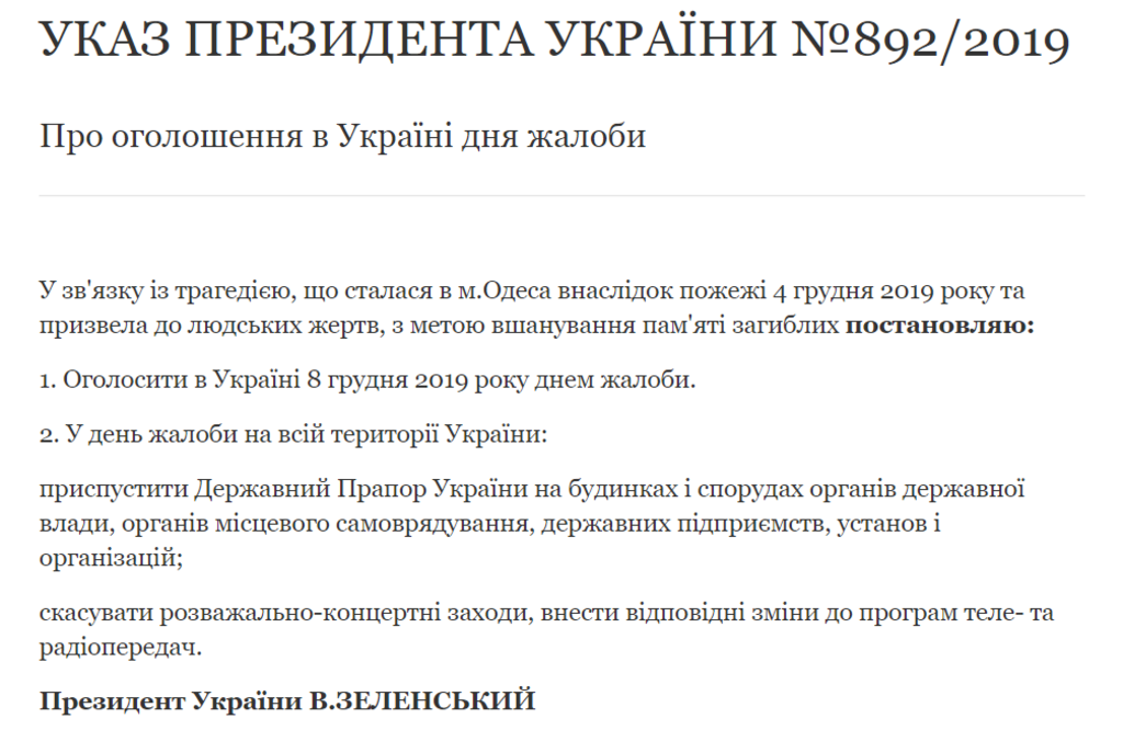 В субботу, 7 декабря, президент Украины Владимир Зеленский объявил воскресенье, 8 декабря, днем национального траура по погибшим в масштабном пожаре в колледже Одессы в среду, 4 декабря.
