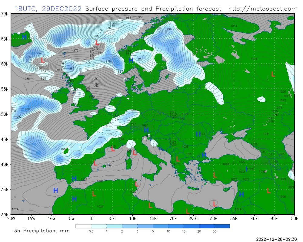 И уже ближе к Новому году в Украине будет повышаться температура воздуха, а в начале 2023, 1 января, столбик термометра будет показывать +5+12 градусов, а в восточной части страны +3+8 градусов.
