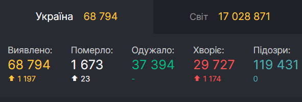 За минувшие сутки, 29 июля, в Украине зафиксировали 1 197 новых случаев коронавируса, что стало антирекордом.
