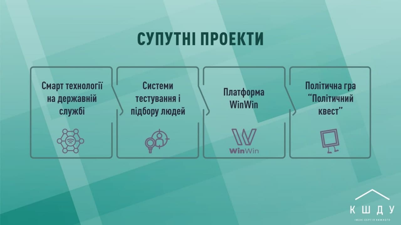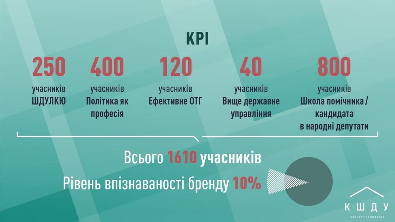 Среди ключевых учебных программ нового органа: общий учебный курс "Лидерство в эпоху прорывов" вместе с Сингапурской школы публичной политики им. Ли Куан Ю, курс "Высшее государственное управление", учебный курс "Эффективная община" для представителей ОТГ, курсы "Политика как профессия", "Помощник народного депутата", "Победа на выборах".