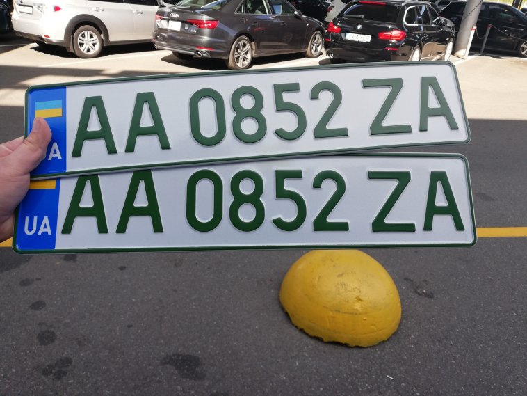 В отличие от обычных номеров впервые в Украине на государственных номерах зеленого цвета используются не только символы, встречающиеся в кириллице и латинице, но и чистая латиница. Так, на опубликованном фото можно увидеть комбинацию символов "ZA".