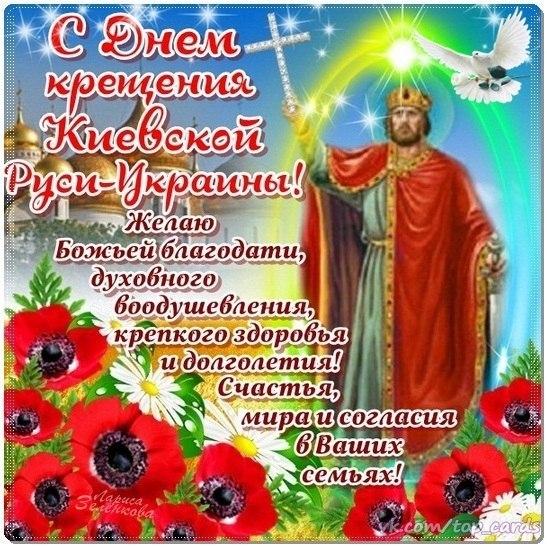 Поздравляю со святым днем, когда Киевская Русь приняла веру христианскую православную! Желаю, чтобы Господь хранил и оберегал тебя от непосильных скорбей и болезней! Чтобы всегда во всем сопутствовала удача, а все плохое и негативное неслось прочь!
