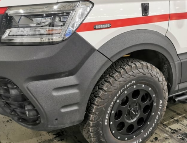 Машина получила усиленную подвеску колес и внедорожные шины увеличенного размера, дорожный просвет увеличен до 290 мм, поэтому машина может преодолевать броды глубиной 820 мм.