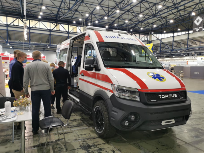 Также на выставке Public Health показали еще один уникальный автомобиль скорой помощи Torsus Terrastorm Ambulance 4 × 4 на базе полноприводного фургона Volkswagen Crafter 35 4Motion.