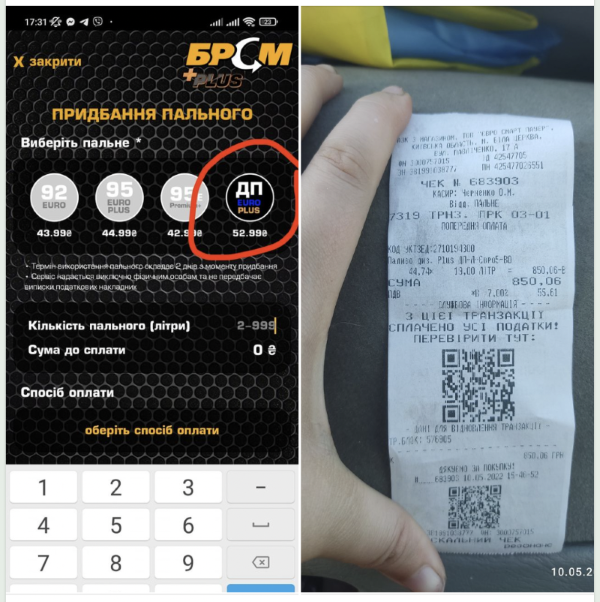 Кроме того, в Киевской области водитель купил дизельное топливо через приложение одной из сетей АЗС по цене 52,99 гривен. При этом на заправке он получил чек, в котором цена топлива указывалась в размере 44,74 гривны за литр. Чек с реальной ценой дизельного топлива покупателю предоставить отказались.