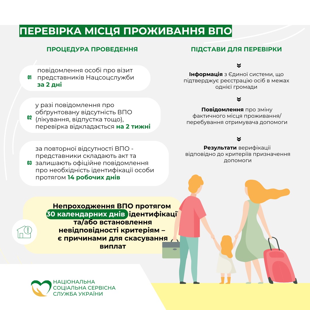 "Начиная с 01 августа 2023 г. были внедрены новые меры контроля за соблюдением требований законодательства при оказании помощи внутренне перемещенным лицам. Следовательно, территориальные органы Национальной социальной сервисной службы провели 1 558 проверок фактического места жительства или пребывания внутренне перемещенных лиц, к которым были также привлечены должностные лица органов социальной защиты населения и/или территориальных громад", - говорится в сообщении.