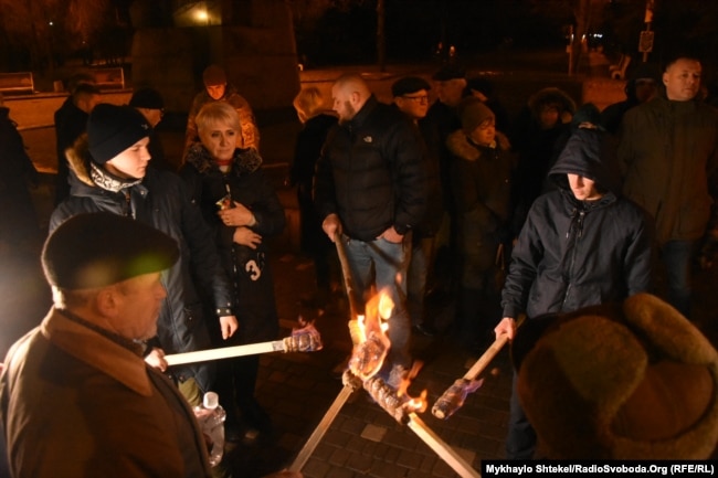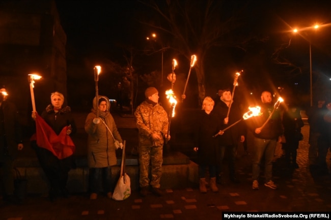 Жители города прошлись с факелами и портретами Бандеры по бульвару Шевченко, сообщает UA:Суспільне.