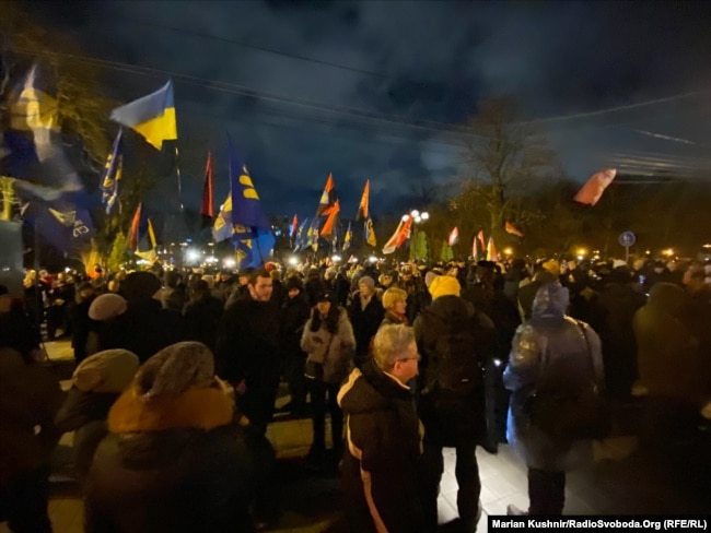 Вечером несколько сотен людей прошли в центре столицы Участники традиционного факельного шествия двинулись от парка Тараса Шевченко для проведения на площади Независимости традиционного вече.
