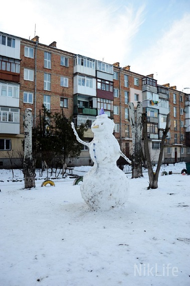 Масштабная фигура из снега появилась во дворе одного из домов на улице Южная. В высоту снеговик достигает более трех метров. Жители дома предполагают, что это самый большой снеговик в Украине.