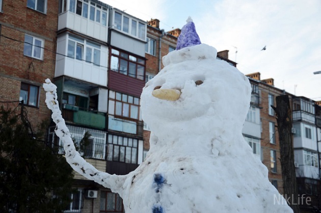 В одном из дворов города Николаев дети слепили снеговика высотой в несколько метров.