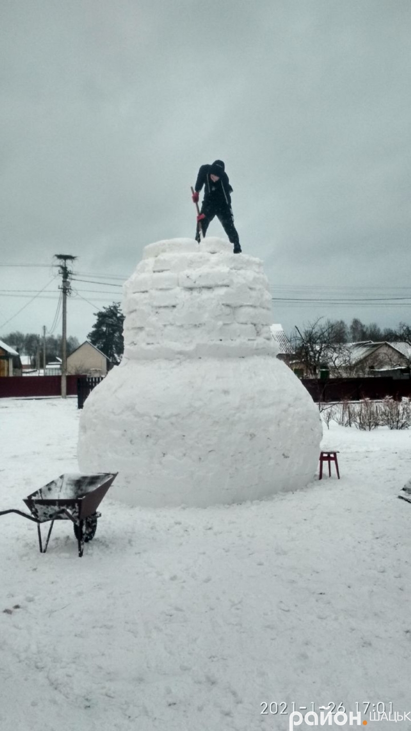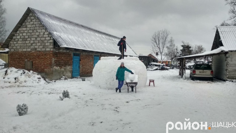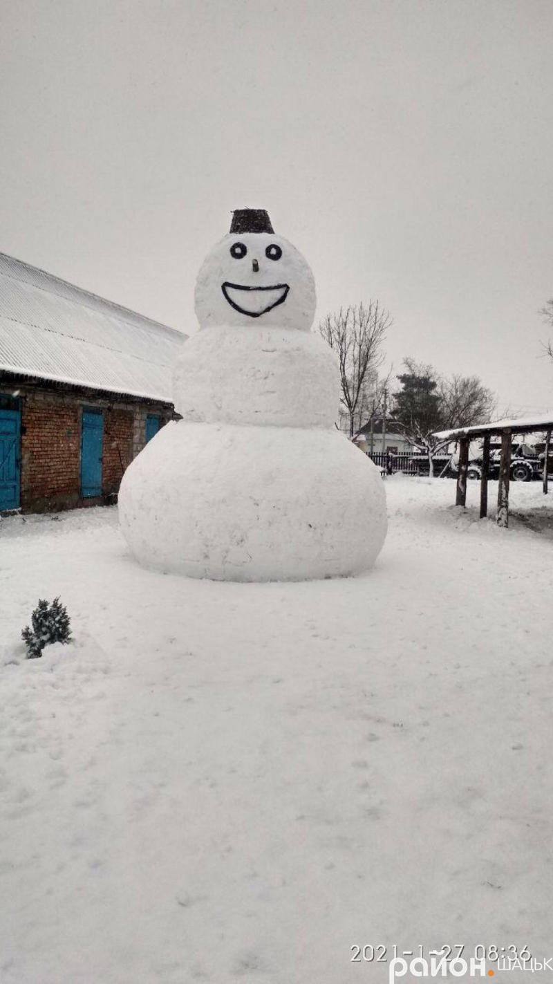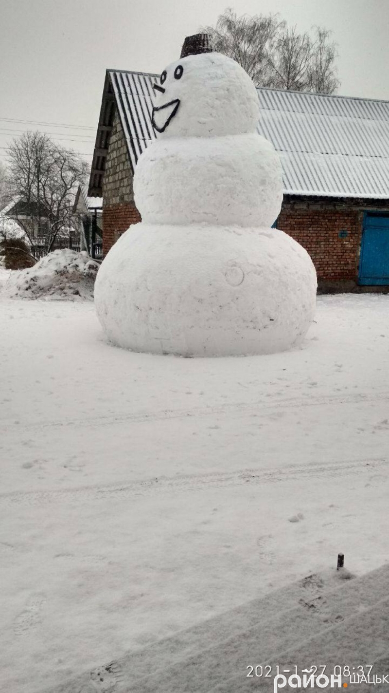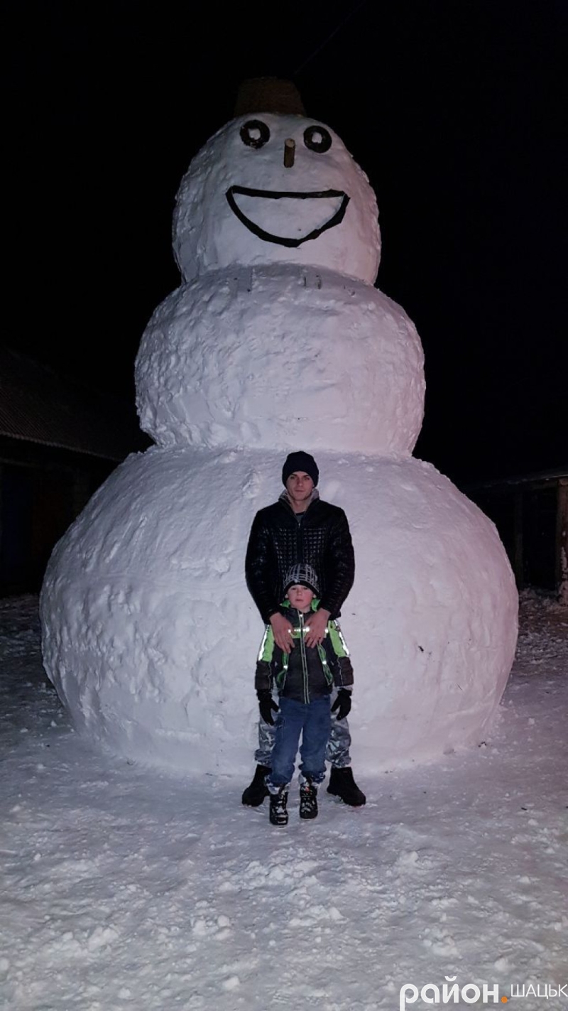Под городом Шацк Волынской области в селе Положево многодетная семья, в которой 10 детей, слепили огромного снеговика высотой 4,6 метра.
