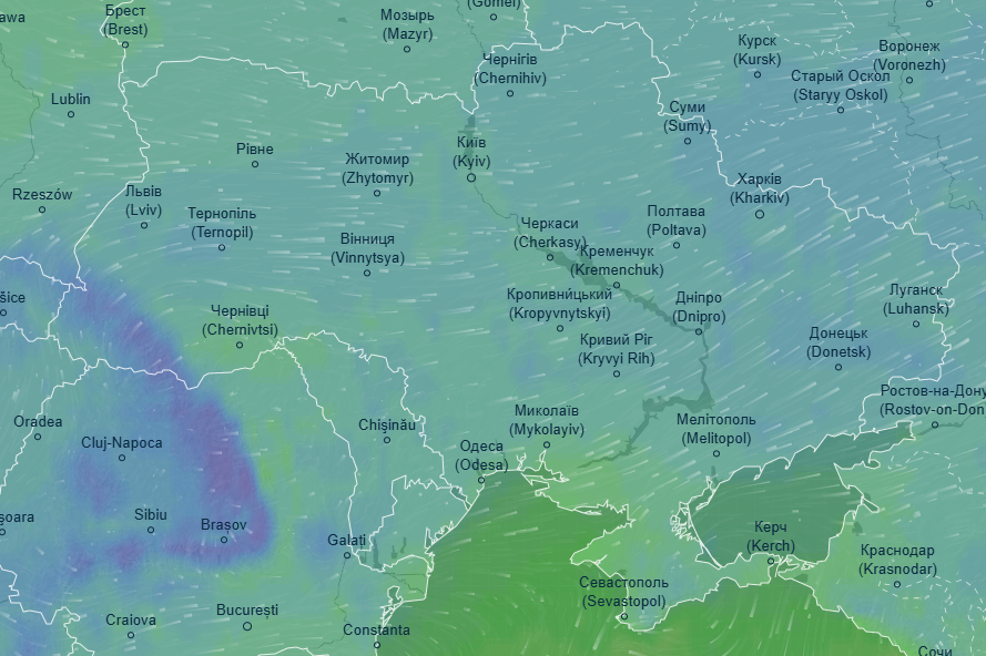 Об этом свидетельствуют данные метеорадара Ventusky.