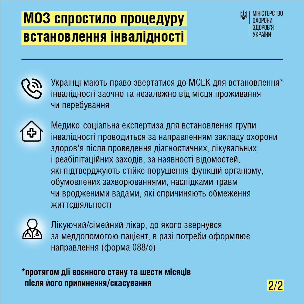В течение действия военного положения и 6 месяцев после его прекращения/отмены украинцы имеют право обращаться в МСЭК для установления инвалидности заочно и независимо от места жительства или пребывания.