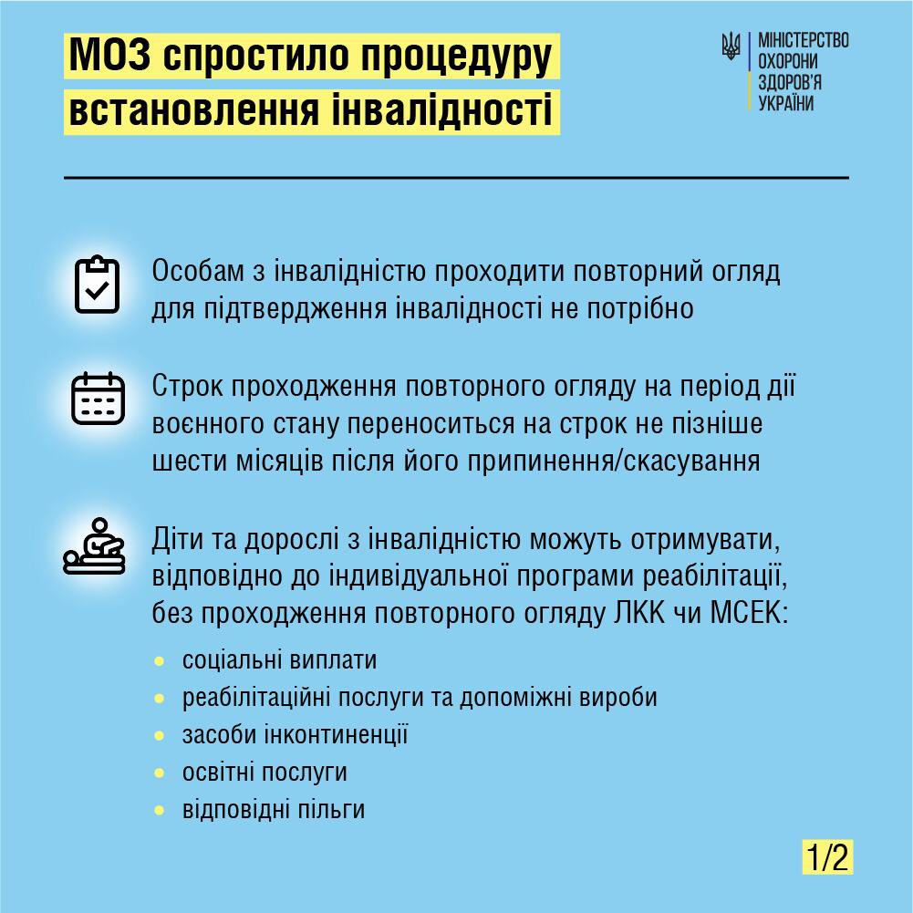 На период действия военного положения в Украине упрощена процедура установления и продления инвалидности.