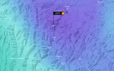 В то же время сообщается, что по данным спутников погоды в селе Квасы этого же района, температура воздуха была -22 градуса мороза.