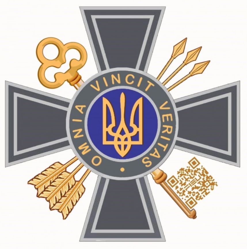 К тому же, часть ключа стилизована в виде QR-кода официального вебсайта Службы внешней разведки Украины. Изображение "Знака Княжеского Государства Владимира Великого", стрел, ключа, а также буквы надписи и точка – золотые.