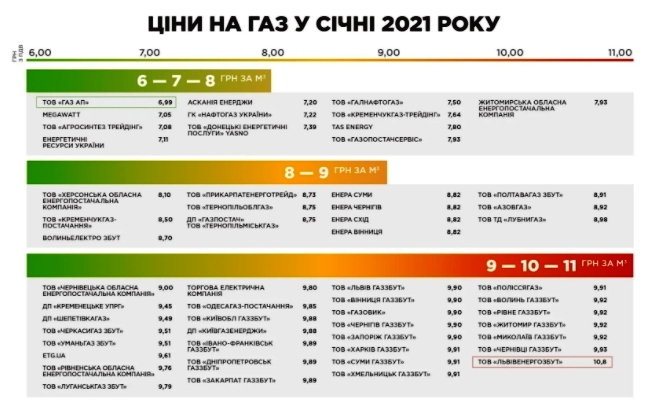 С 1 января в Украине начнут увеличиваться цены на газ для бытовых потребителей, поскольку большинство газоснабжающих компаний Украины повысили цены. Цены поставщиков на данный момент колеблются от 7,10 до 10,8 грн за кубометр.