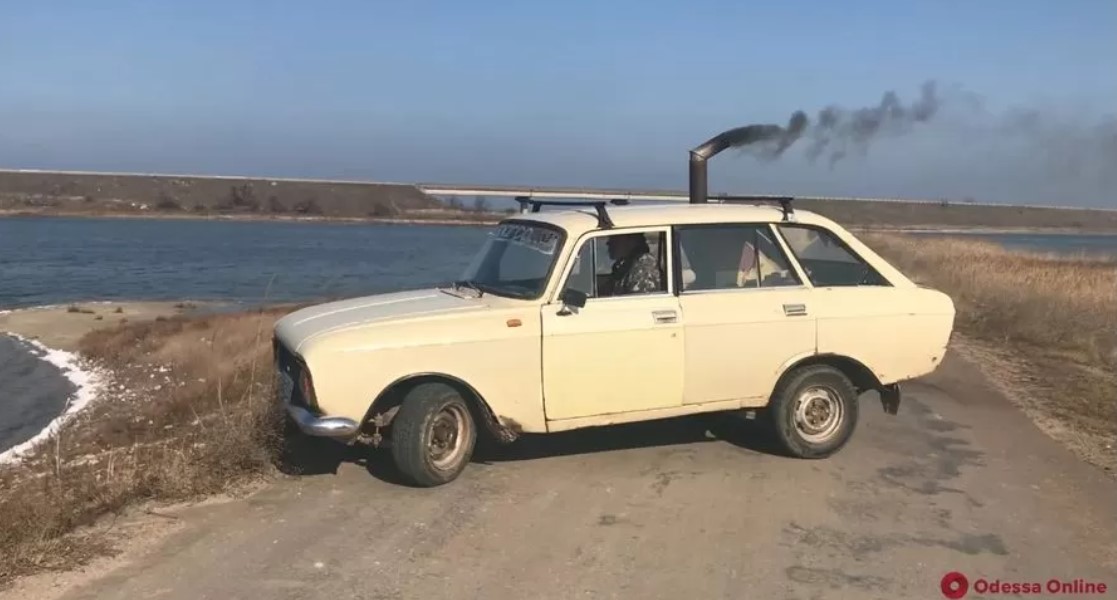 Житель села Кошары Одесской области Анатолий Белоус сделал из автомобиля "Москвич" оригинальную машину, установив туда буржуйку.