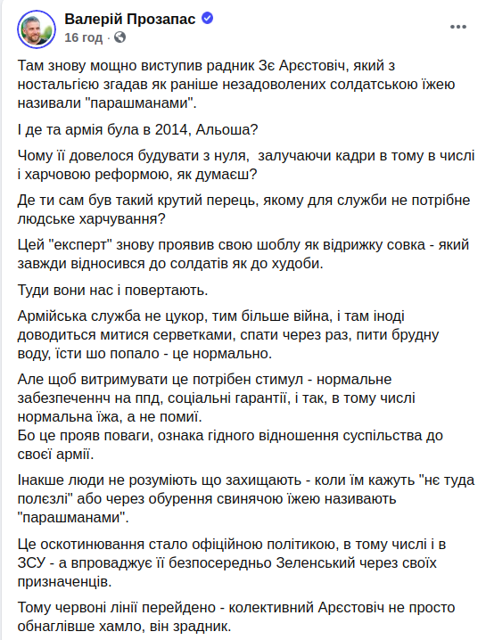 В марте, как писал "Апостроф", также разгорелся скандал из-за питания для бойцов ВСУ.