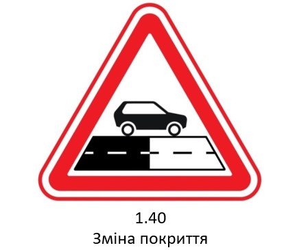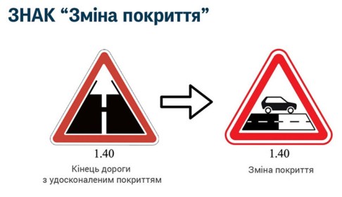 В Украине появится новый дорожный знак. Так, предупреждающий знак 1.40 "Конец дороги с усовершенствованным покрытием" заменяется новым знаком "Изменение дорожного покрытия".