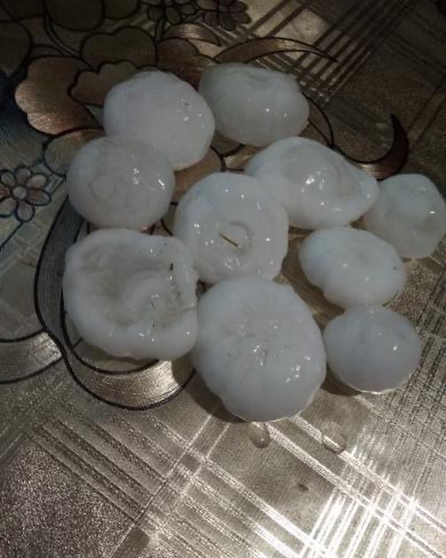Пользователи сети уточняют, что гигантский град обрушился на село Могыляны Острожского района. На одной из фотографий выпавшие льдинки положили рядом с куриным яйцом, чтобы убедительно показать их огромный размер.