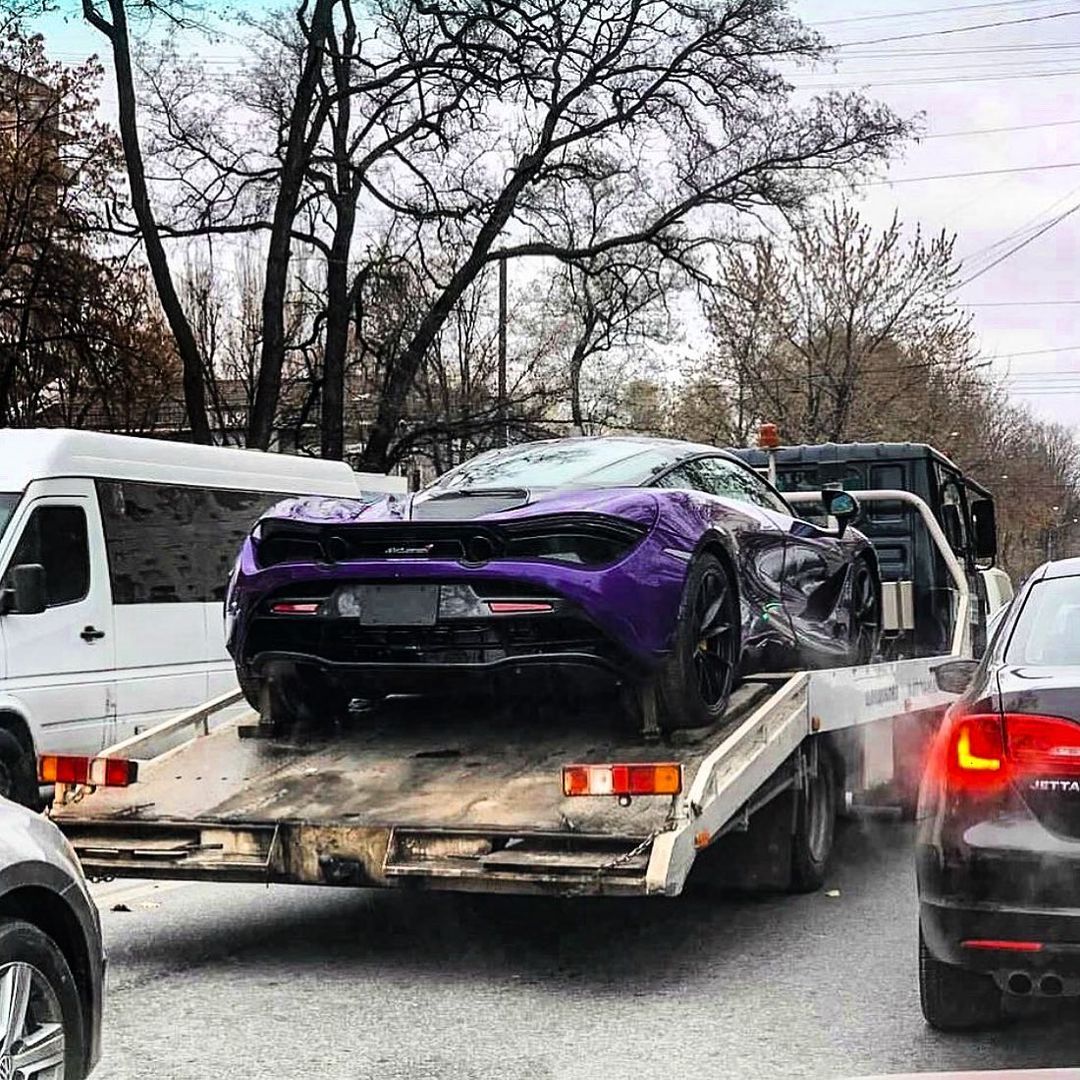 В Запорожье на эвакуаторе заметили McLaren 720S роскошного фиолетового цвета, его везли в Киев.