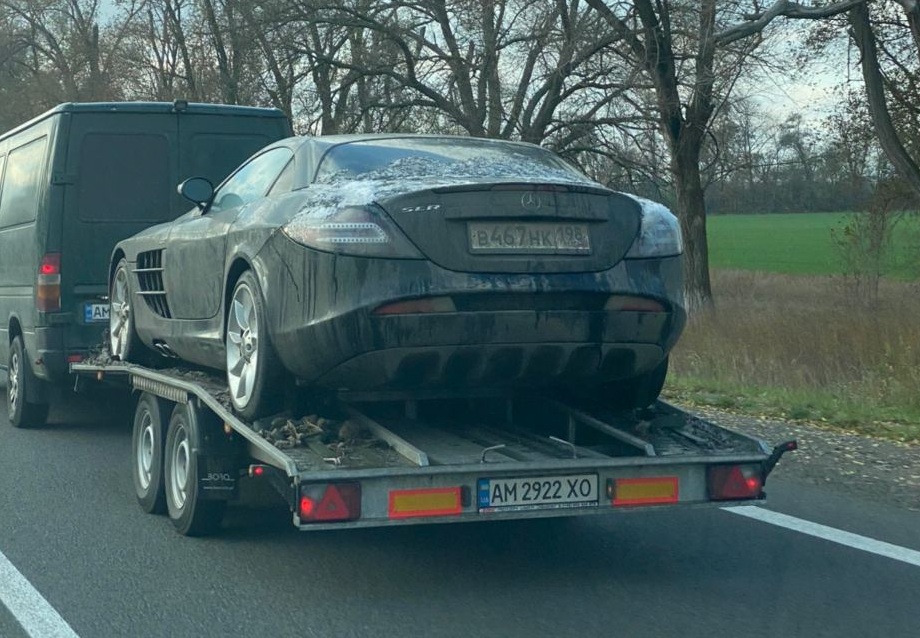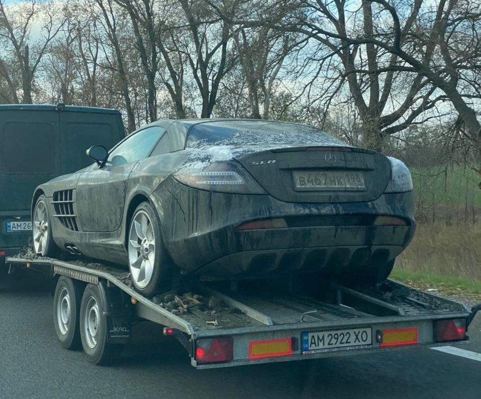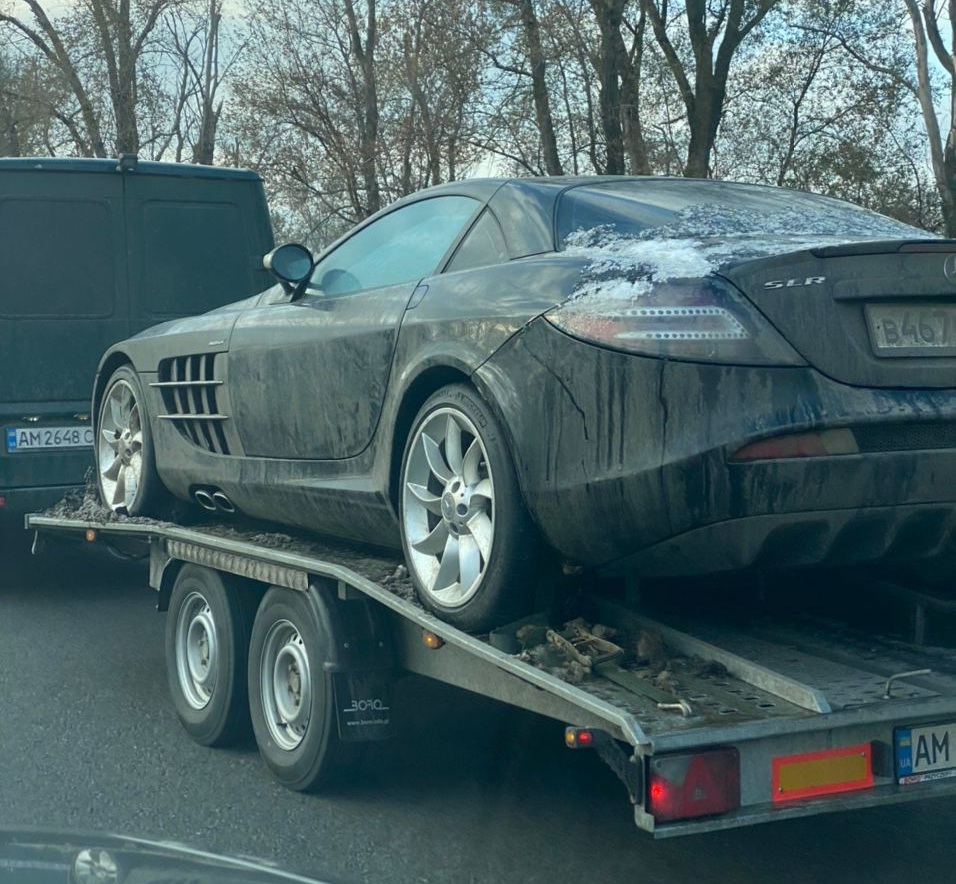 В Украине заметили раритетный автомобиль Mercedes SLR McLaren, который перевозили эвакуатором из России. В Украине таких автомобилей не так уж и много, и он, естественно, привлек к себе внимание.