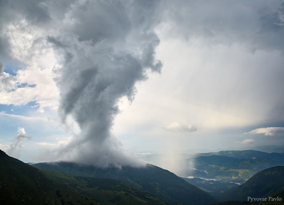 Фотограф Павел Пивовар, который отдыхает в Карпатах, показал кадры смерча, который пронесся над горами.