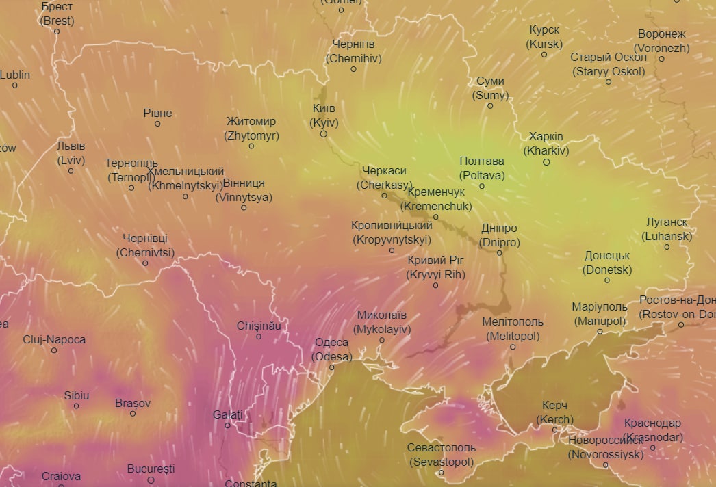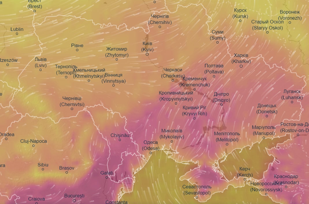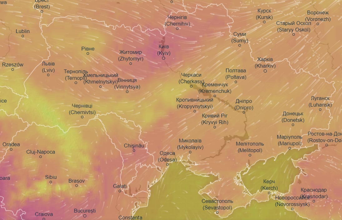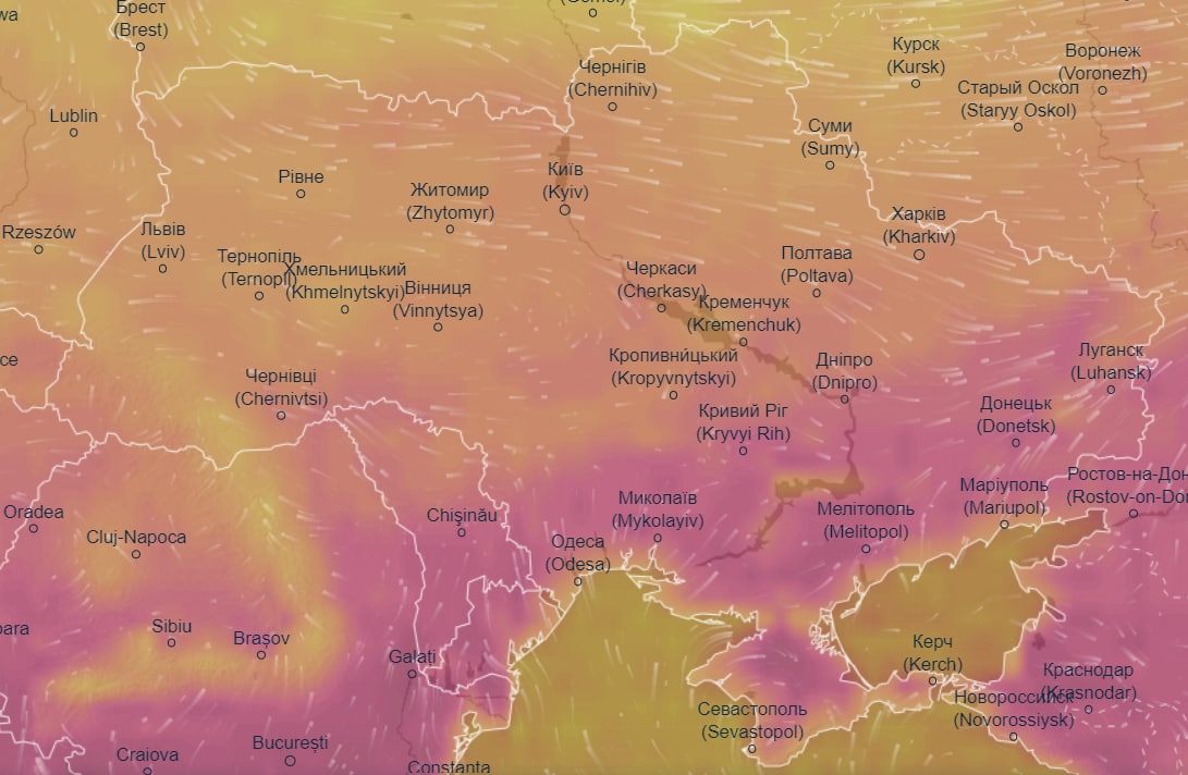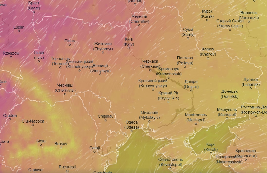 Об этом свидетельствуют данные метеорологического сайта Ventusky.