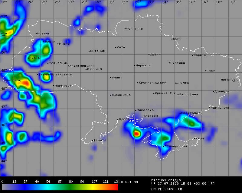 В понедельник, 27 июля, грозовые дожди пройдут местами в южной части, в западных областях, могут дойти до Винницкой и Житомирской областей. На остальной территории Украины будет сухо и солнечно.