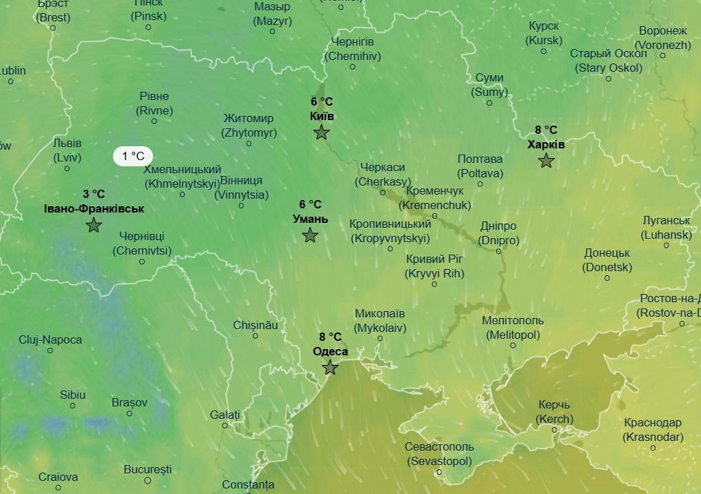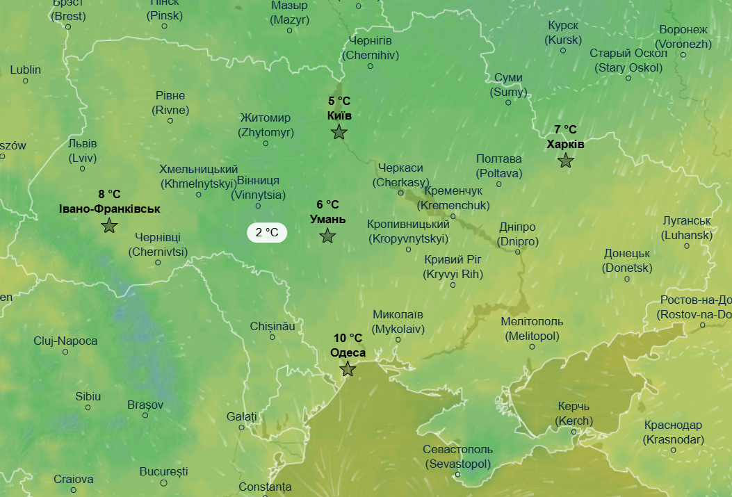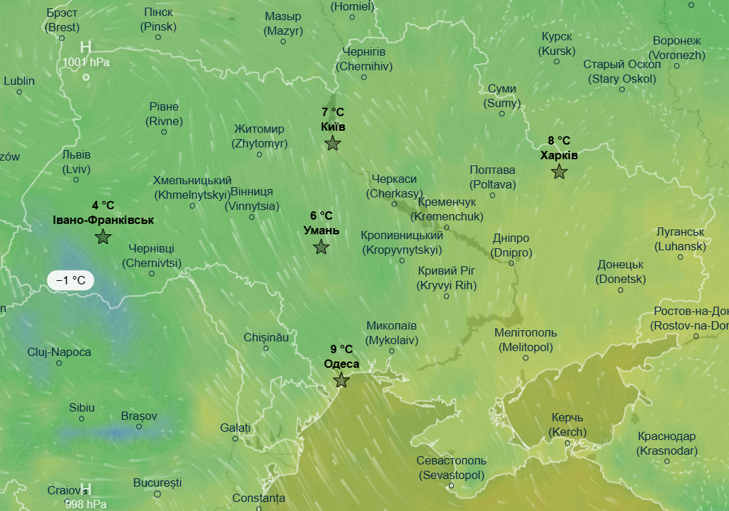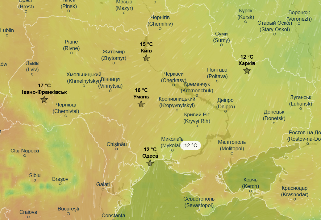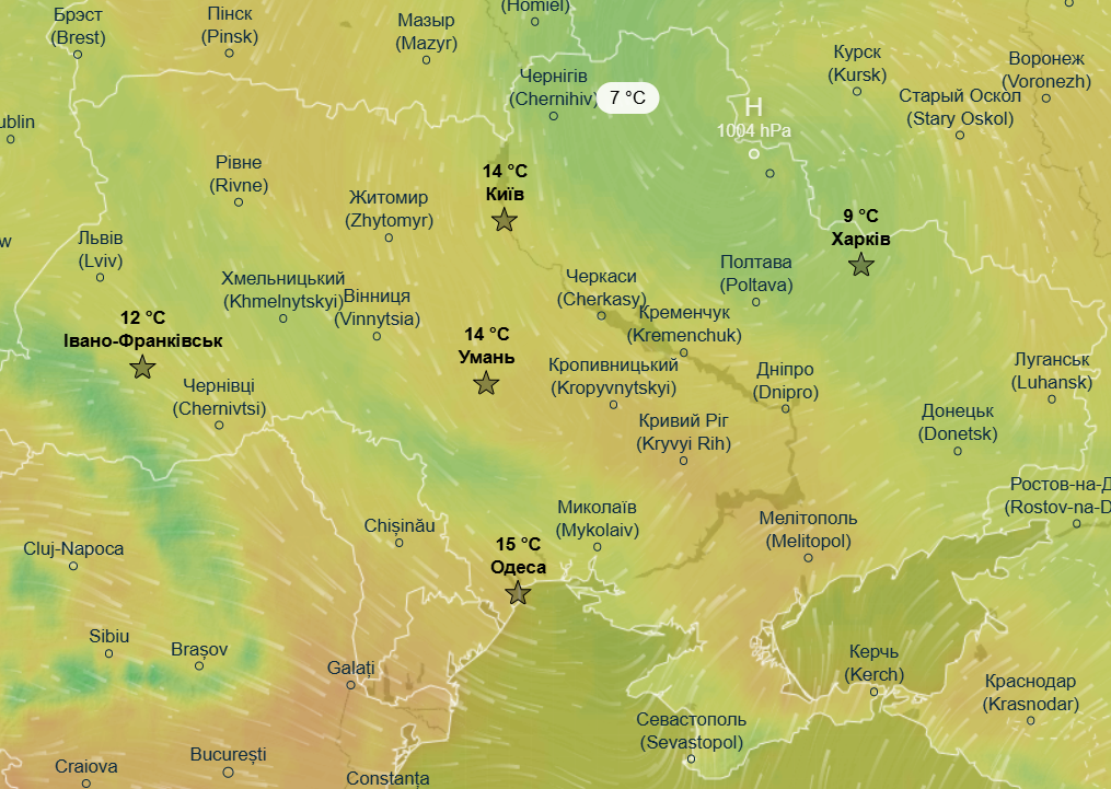 Днем термометры поднимутся до +12...+14 градусов на большей территории страны, прохладнее будет в восточном регионе и некоторых северных и центральных областях - до +7.