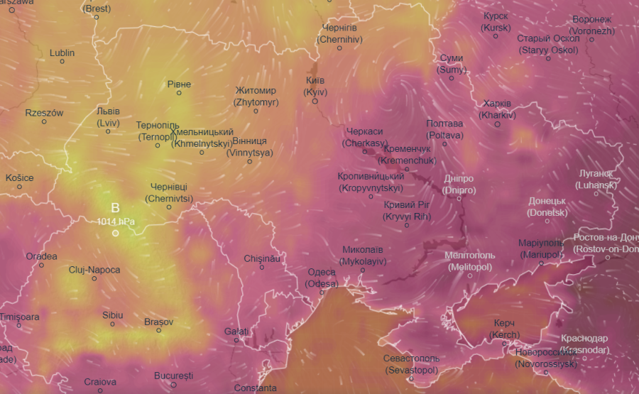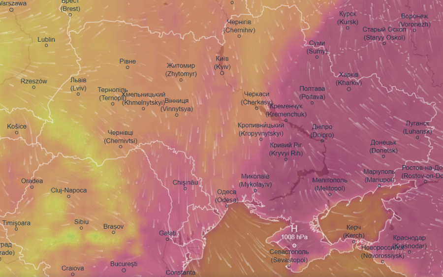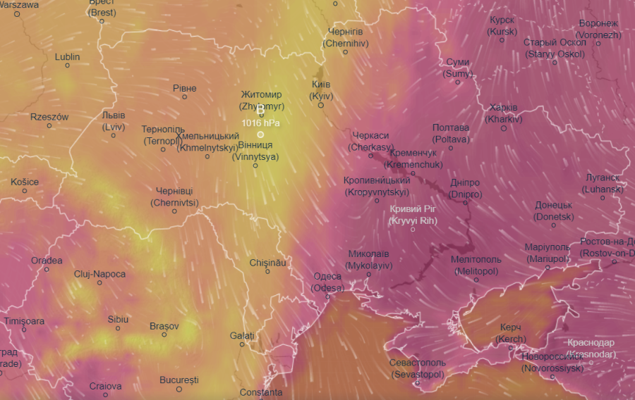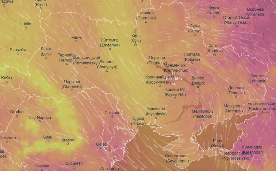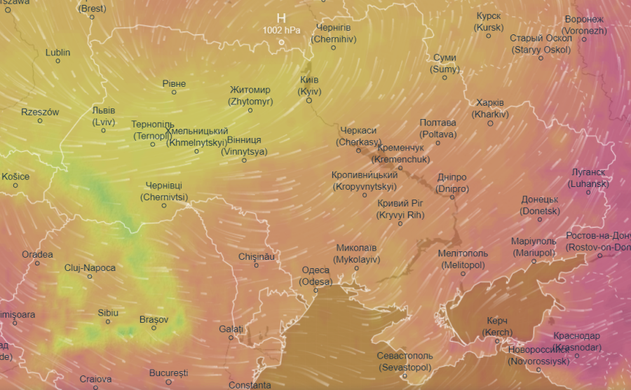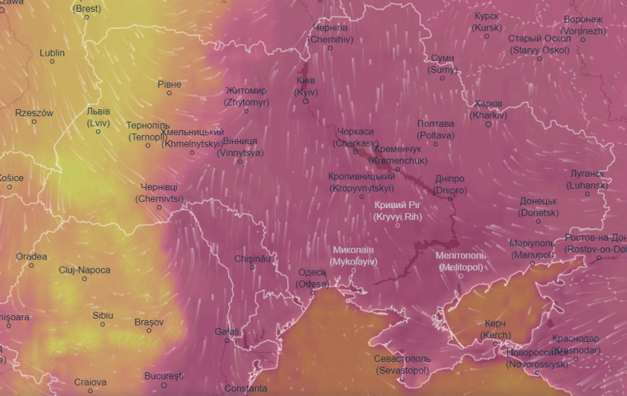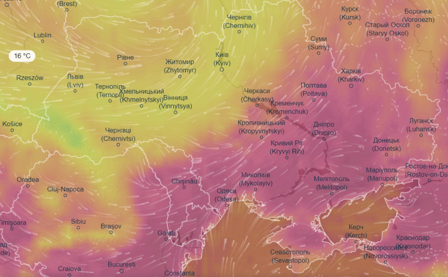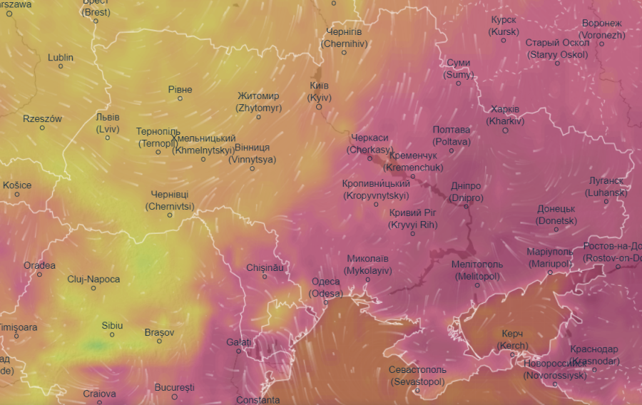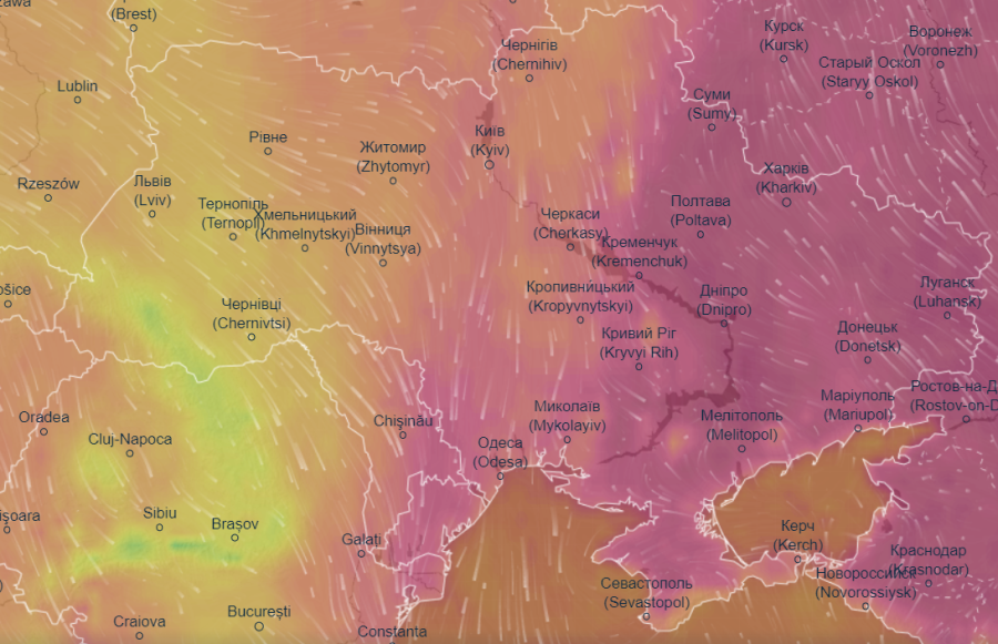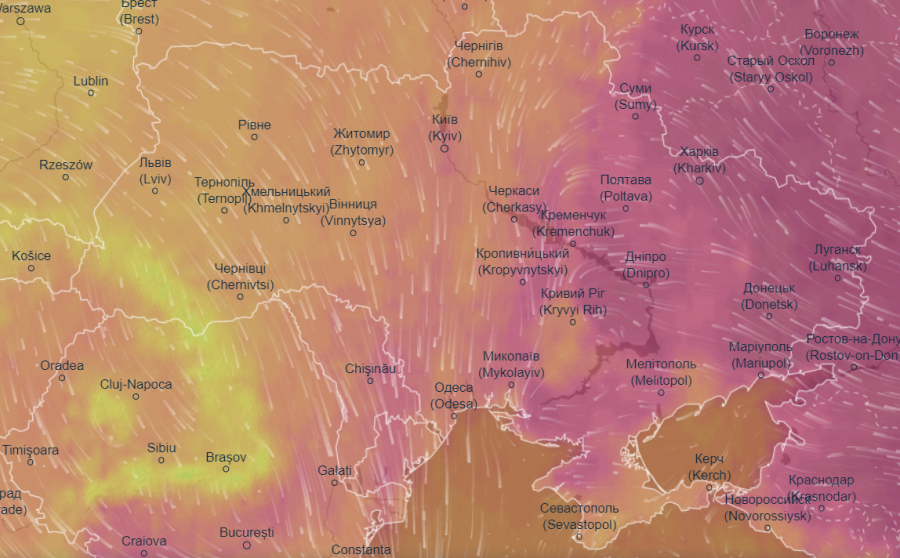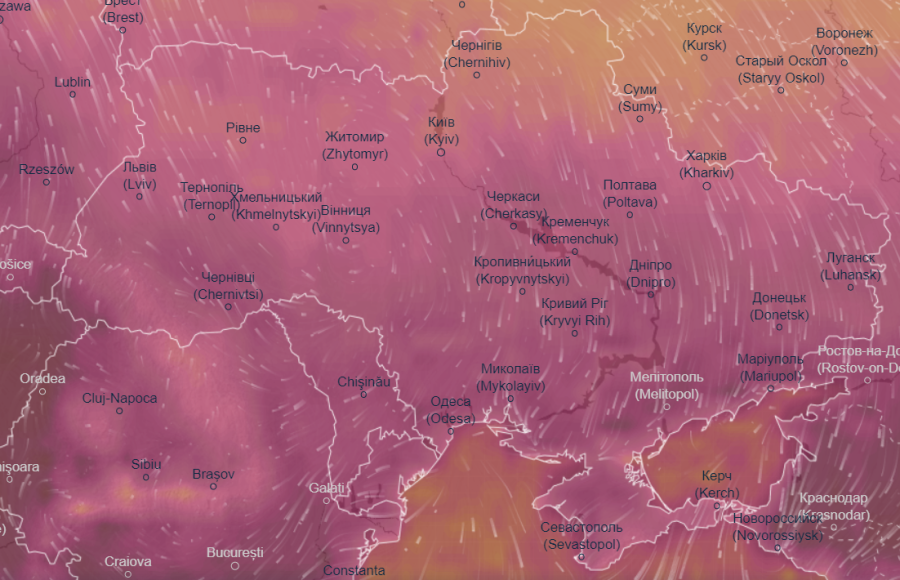 Об этом свидетельствуют данные на погодном онлайн-ресурсе ventusky.com.